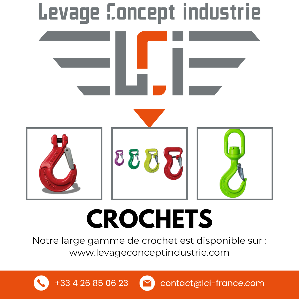 Vous êtes également libre de consulter directement le catalogue des crochets sur notre site accessoires.levageconceptindustrie.com afin de visualiser nos produits.